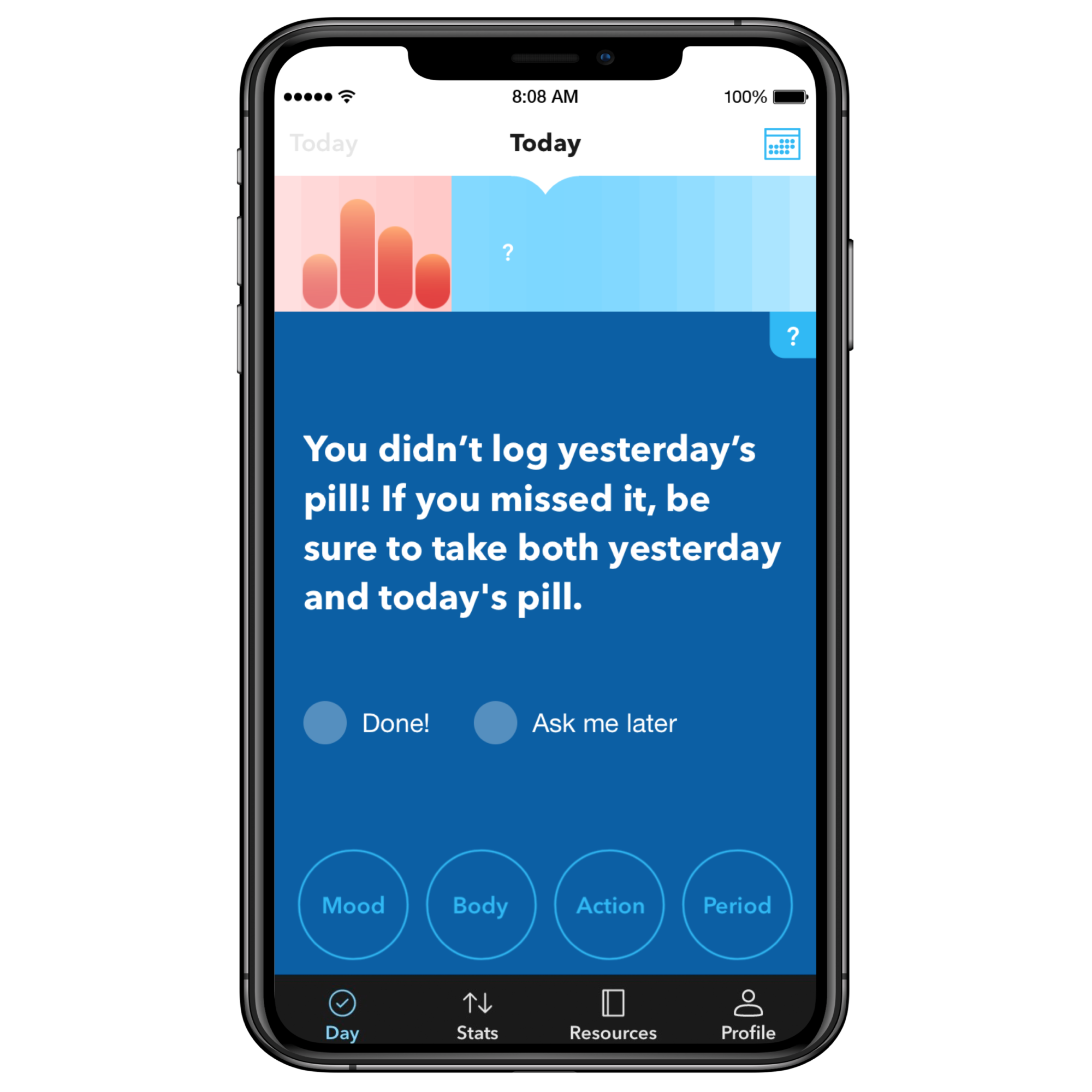 Opportunity: Planned Parenthood received funding to create a period and birth control tracking and compliance app. The objective was to deliver medically accurate, assumption and judgement-free, reproductive healthcare information and education to all users, but especially to users in traditionally underserved communities that suffer from poor reproductive health outcomes.